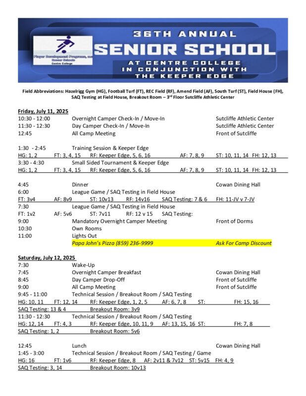 Centre College Soccer Camps, Clinics & Development Programs